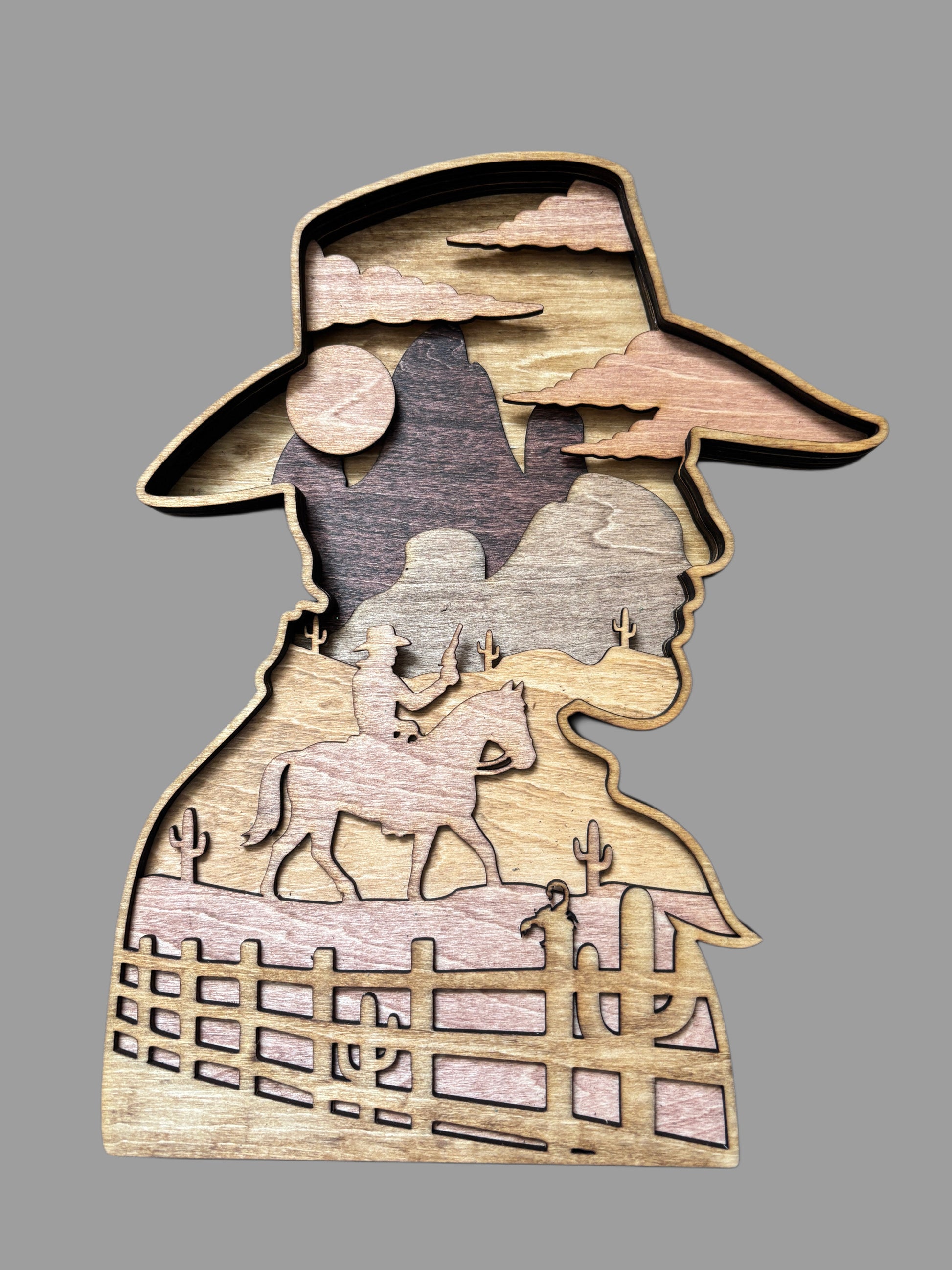 This 7.75"x10" Cowboy Silhouette frame showcases a striking horse rider scene, capturing the essence of the Western frontier. Designed for decorative use, it expertly combines artistry and rugged charm, making it an ideal choice for adding authentic Western character to your space. Crafted to highlight the iconic cowboy lifestyle with timeless appeal.