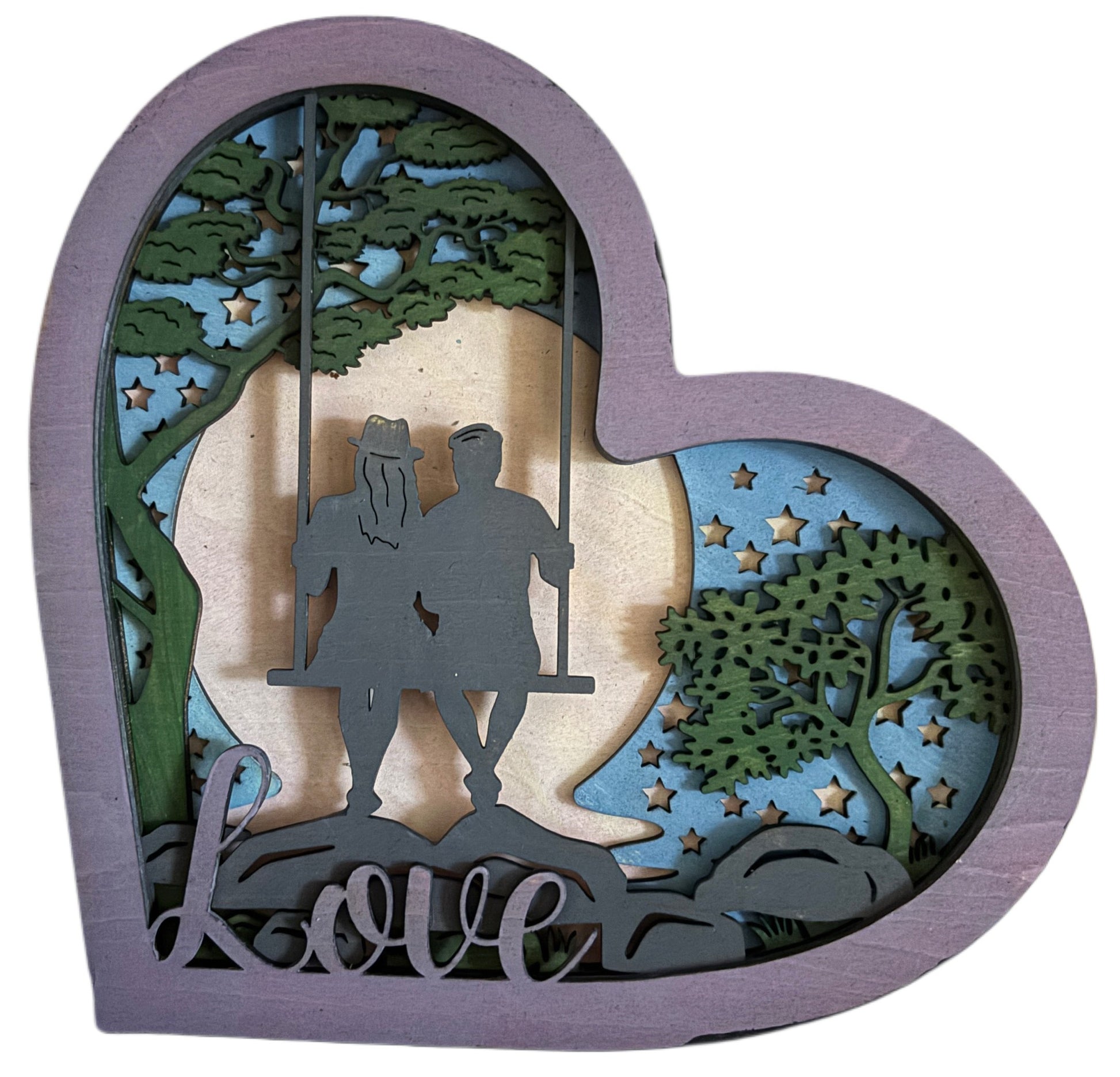 The Love Swing is a finely crafted wooden decor piece that brings a romantic and scenic accent to indoor settings. Measuring 7" x 6.8", its elegant design complements various interior styles, making it a meaningful gift for special occasions. Ideal for adding a subtle yet charming focal point to your living space.